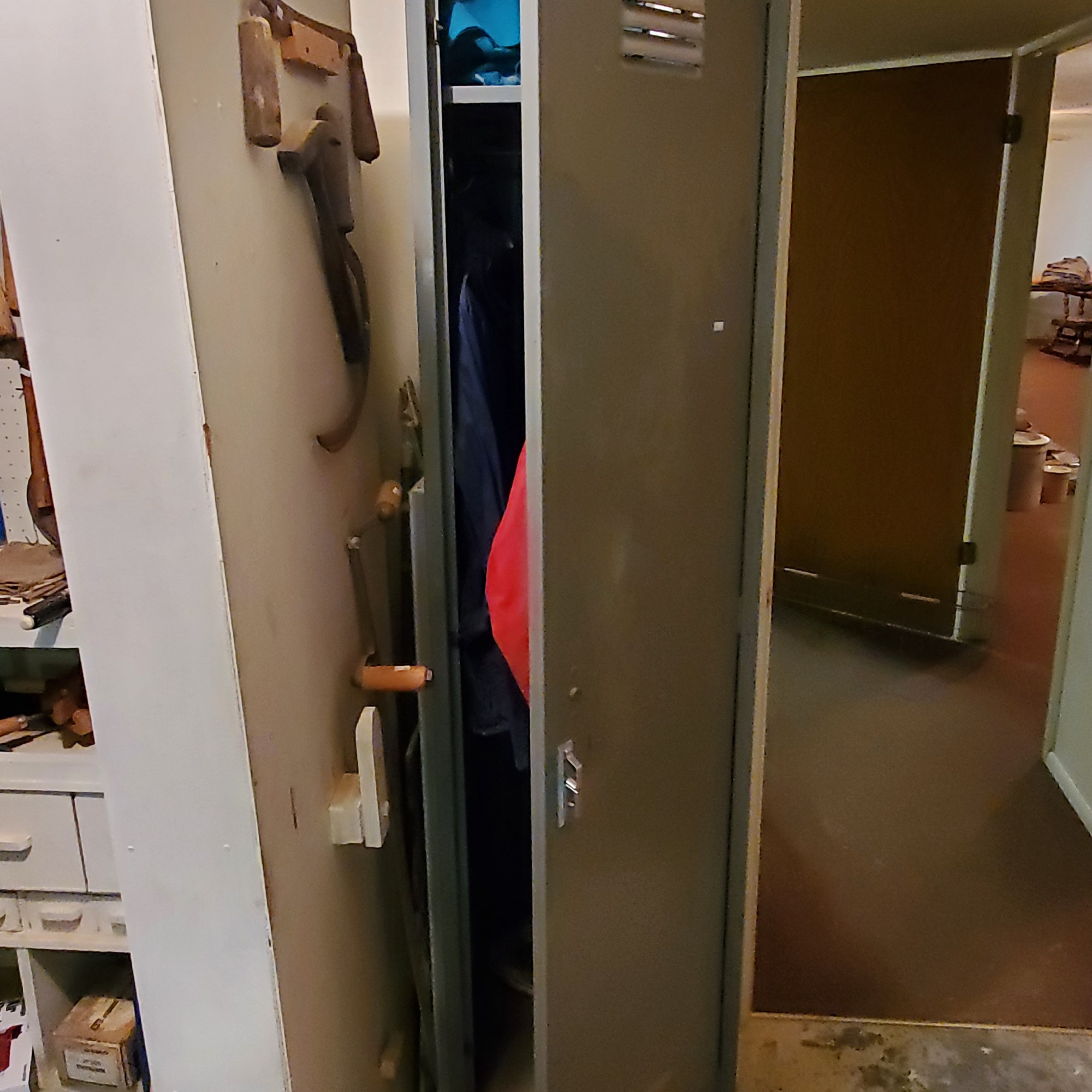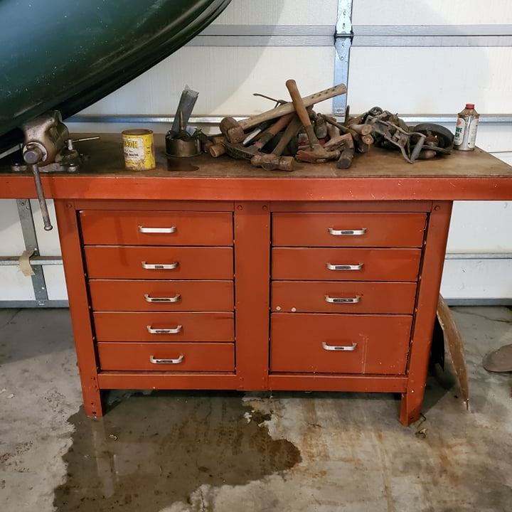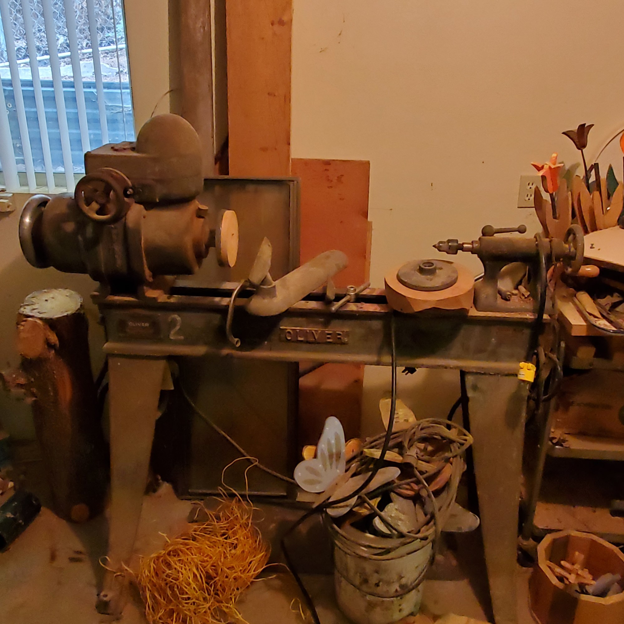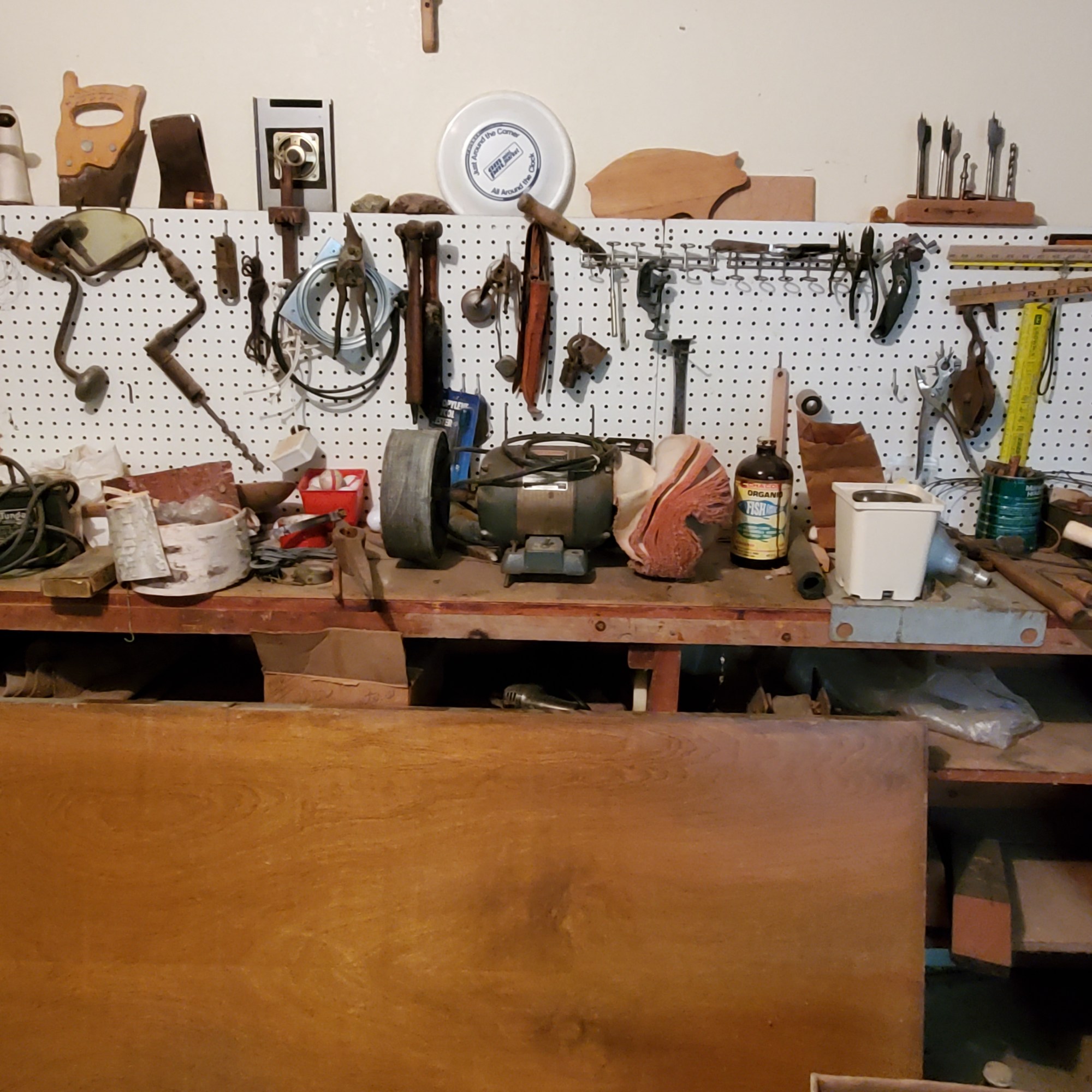Wood lathe, saw sharpener, antique armature tester, Foley power setter, work benches, hand jig saw, router, hand grinder, antique transit with tripod, book and case, Johnson boat motor, scuba equipment, lots of hand tools, Coleman RAM-X crawdad boat, arc welder, compresser, antique solder torch, work bench with drawers, WWII handgun holster, Peter Wright anvil, lots and lots of tools.