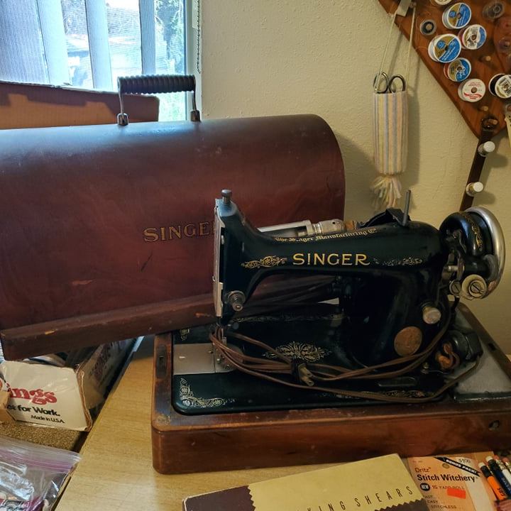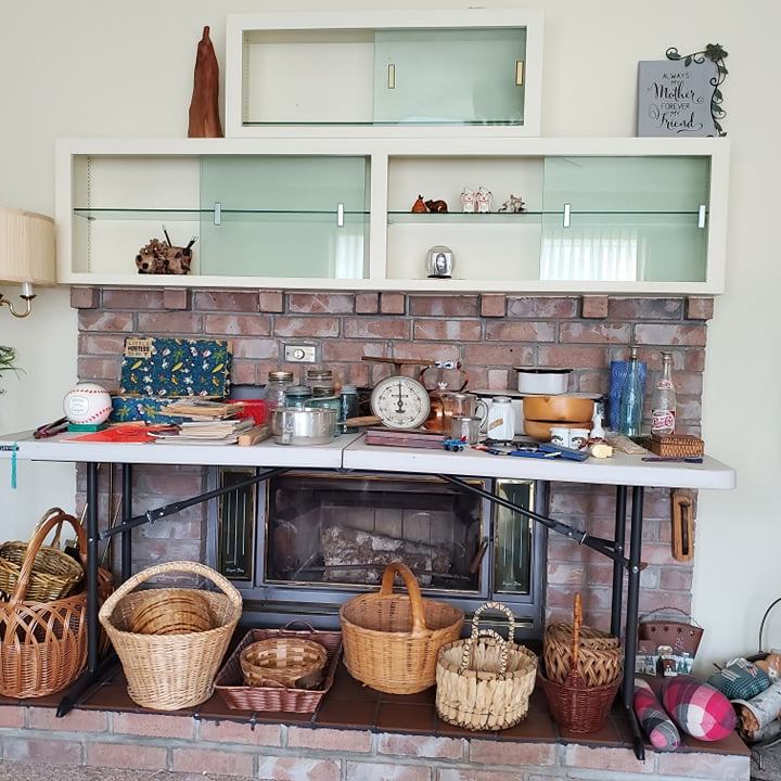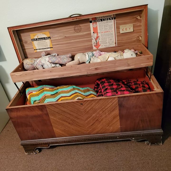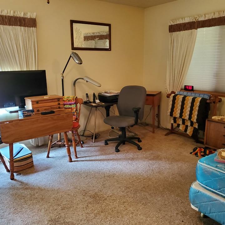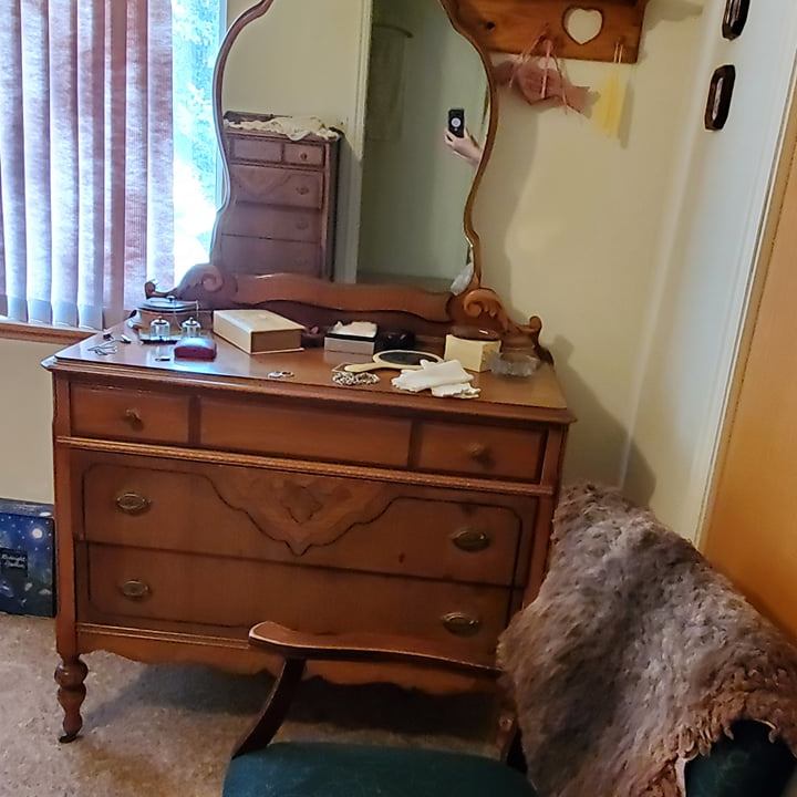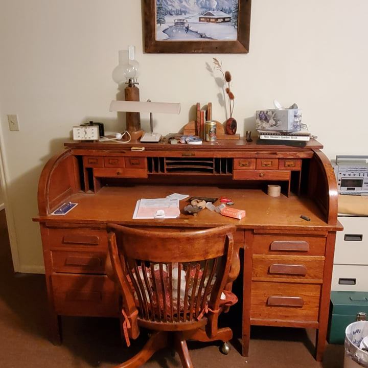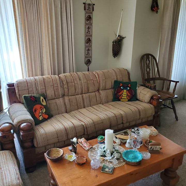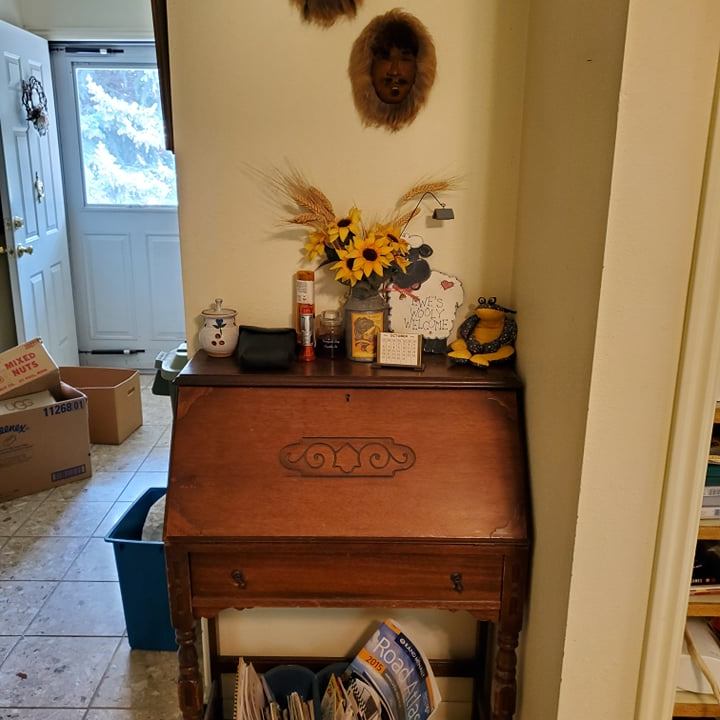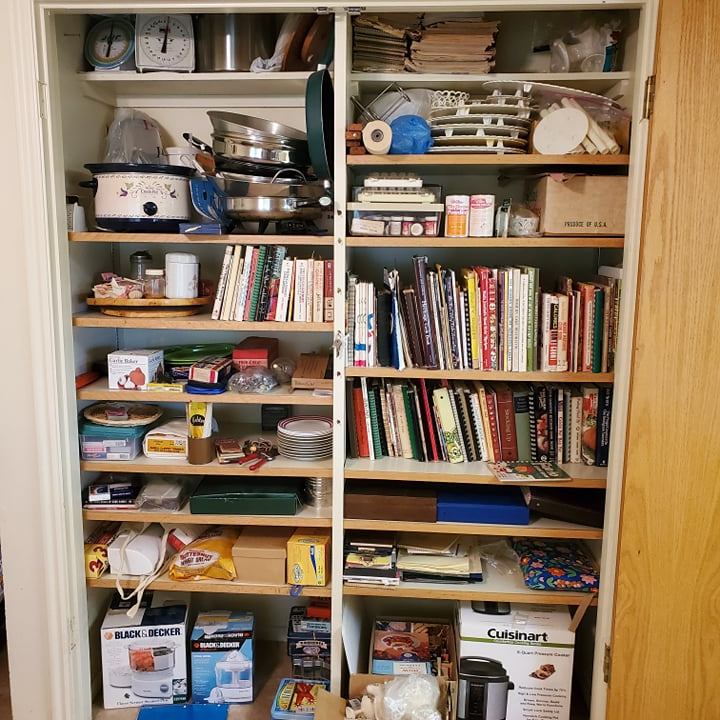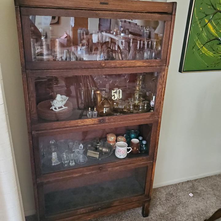 Kitchen full of everyday items, brand new hand towels, Kitchenaid, Cuisinart Food Processor, Wagnerware, revere ware, cast iron, Wilton cake pans, cake decorating items, cook books, collection of Fostoria American Glassware, antique curio cabinet, antique barrister/lawyer bookcase, Lane bedroom set, antique bedroom set with highboy and chest of drawers with mirror, antique roll top desk, lots of antique household items including vintage glassware and depression glass, Hutschenreuther Vernon china, vintage & retro McCall’s sewing patterns, fabric, yarn and knitting items, Vintage cabbage patch doll and homemade clothing, large collection vintage and antique ladies handkerchiefs, Antique Singer sewing machine with bentwood carrying case & key, Singer sewing machines from the 70’s & 80’s, antique White sewing machine in table, antique Singer sewing machine in table, Roos cedar chest, second cedar chest, oak dining table with leaf and chairs, Snooker pool table from the Delmar Hotel in Las Vegas, 2 antique trunks with innards, televisions, full stained glass sheets and so on!!!